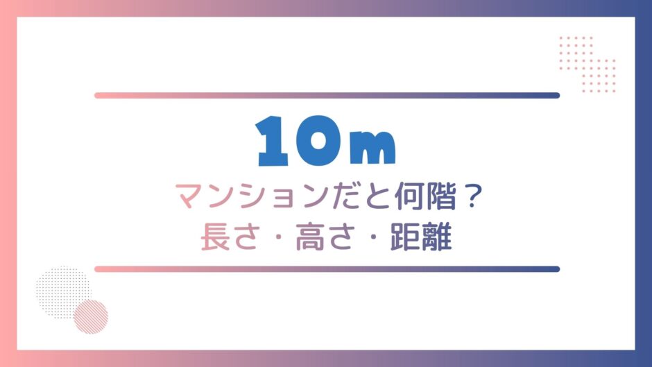 「10m」は、数字だけ見るとピンと来ないけれど、身近な長さに置き換えると一気にイメージできます。たとえばマンションだと何階くらいか、部屋の中ならどこからどこまでか、外なら車やバスでどのくらいか。
