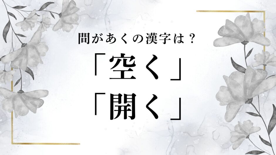 「時間の間があく」のか、「距離の間があく」のか、それとも「会話の間があく」のか——文脈によって適切な漢字は変わります。この記事では「間があく」における「空く」と「開く」の違いを、意味・用法・例文を交えてわかりやすく解説します。日本語の使い分けに自信をつけましょう!