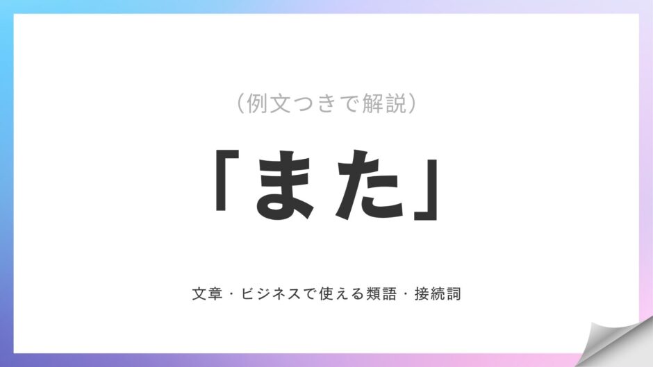 この記事では、「また」の言い換え表現を意味別・場面別に整理し、具体的な例文とともに解説します!ビジネスメール・レポート・ブログ記事など、あらゆる文章をワンランクアップさせたい方はぜひ読んでみてください!