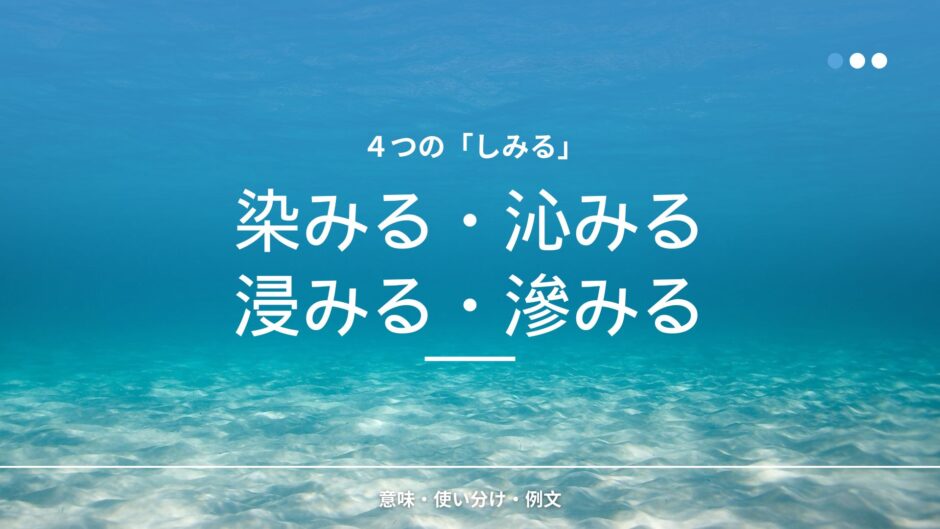 - 滲みる:液体や色がにじみ出て広がる。「にじむ」「にじみ出る」に近いニュアンス