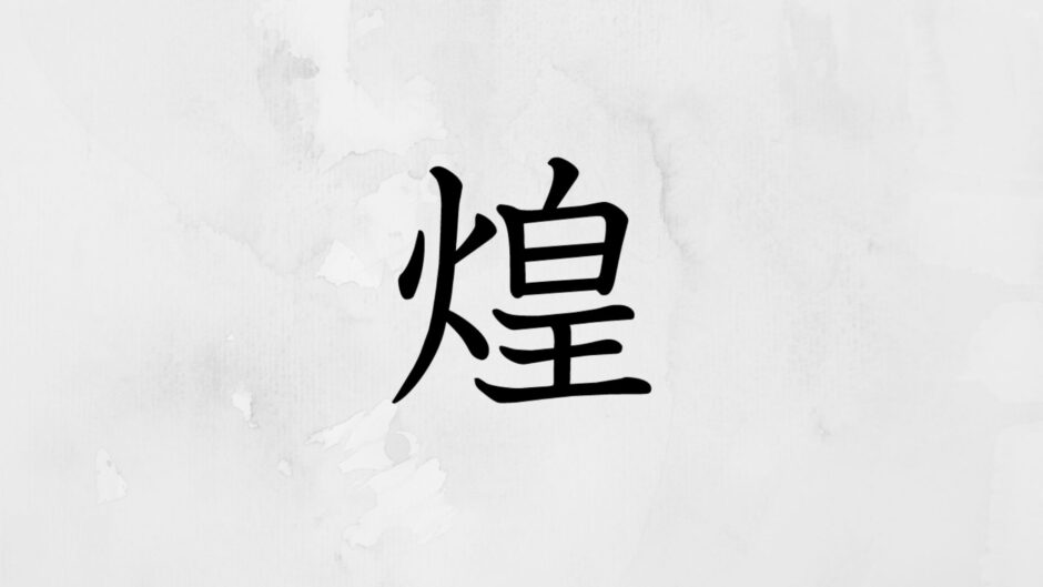 「火(ひへん)」+「皇(光り輝く偉大なもの)」の組み合わせにより、「炎のようにまばゆく大きく輝く」という「煌」の意味が生まれました。部首と構成要素が意味を二重に補強し合うこの構造は、漢字の成り立ちの中でも特に美しい例のひとつといえます。字形の壮大さと華やかさが、「煌」という字が名前や店舗名に好まれる理由のひとつでもあるでしょう。