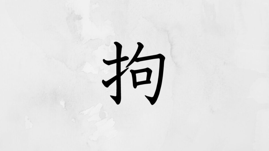 「拘」は、「とらえる・束縛する・こだわる・かかわる」を意味する漢字です。物理的な意味では、人を捕らえて自由を奪う・拘束するという行為を指します。そこから転じて、精神的・心理的な意味での「こだわり・執着・とらわれ」を表す用法も広く定着しています。
